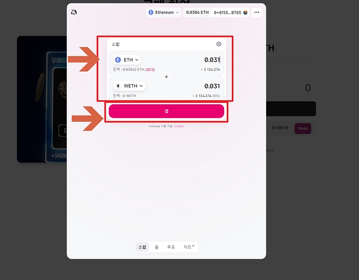 좌측 하단의 ‘Swap’ 버튼을 눌러줍니다.
